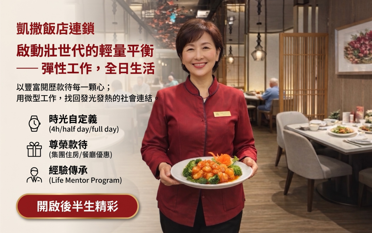 - 號召「壯世代」夥伴,共創溫暖款待:面對產業轉型,我們強力徵求 45-65 歲的「壯世代」族群加入!我們看重您成熟的特質、穩定度與人生智慧,這正是提升服務品質最重要的「軟實力」。